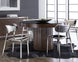 Reminiscent of Old World style, this round dining table features an etched base crafted from solid espresso wood. Black tempered glass rests atop the table for a clean, transitional look.