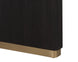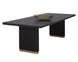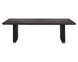 The Kalla Dining Table brings form and function to life. Crafted with a charcoal grey oak veneer table top with a chamfered edge. Vertical reeding on a solid oak wood base with brushed gold steel detailing at the bottom finishes the look. As wood is an organic, porous material, these pieces will contain natural variation of texture and may also exhibit fine indentations and cracks. Wood pieces will also display a disparity of colour and grain, and visible knots and burls that add to the character of each piece.