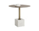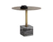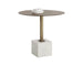 Add a touch of opulence to any space with this spectacular bistro table. Features a brushed antique brass frame with linear patterning on the tabletop. Completed with a grey marble block base. Also available in white marble. Made in India. With refined craftsmanship, this design was brought to life by skilled local artisans. By nature, these materials develop unique imperfections such as fissures, markings and colour variations for a truly one-of-a-kind piece.
