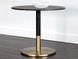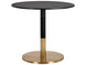 A round bistro table inspired by Art Deco luxury. Features a matte black marble top with striking gold and white veining and a black and gold steel base. Perfect for small kitchen and dining spaces. As marble is a natural material, unique veining, pitting, fissures, micro-cracks and colour variations are all characteristics that add to the uniqueness and beauty of each piece.