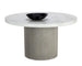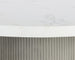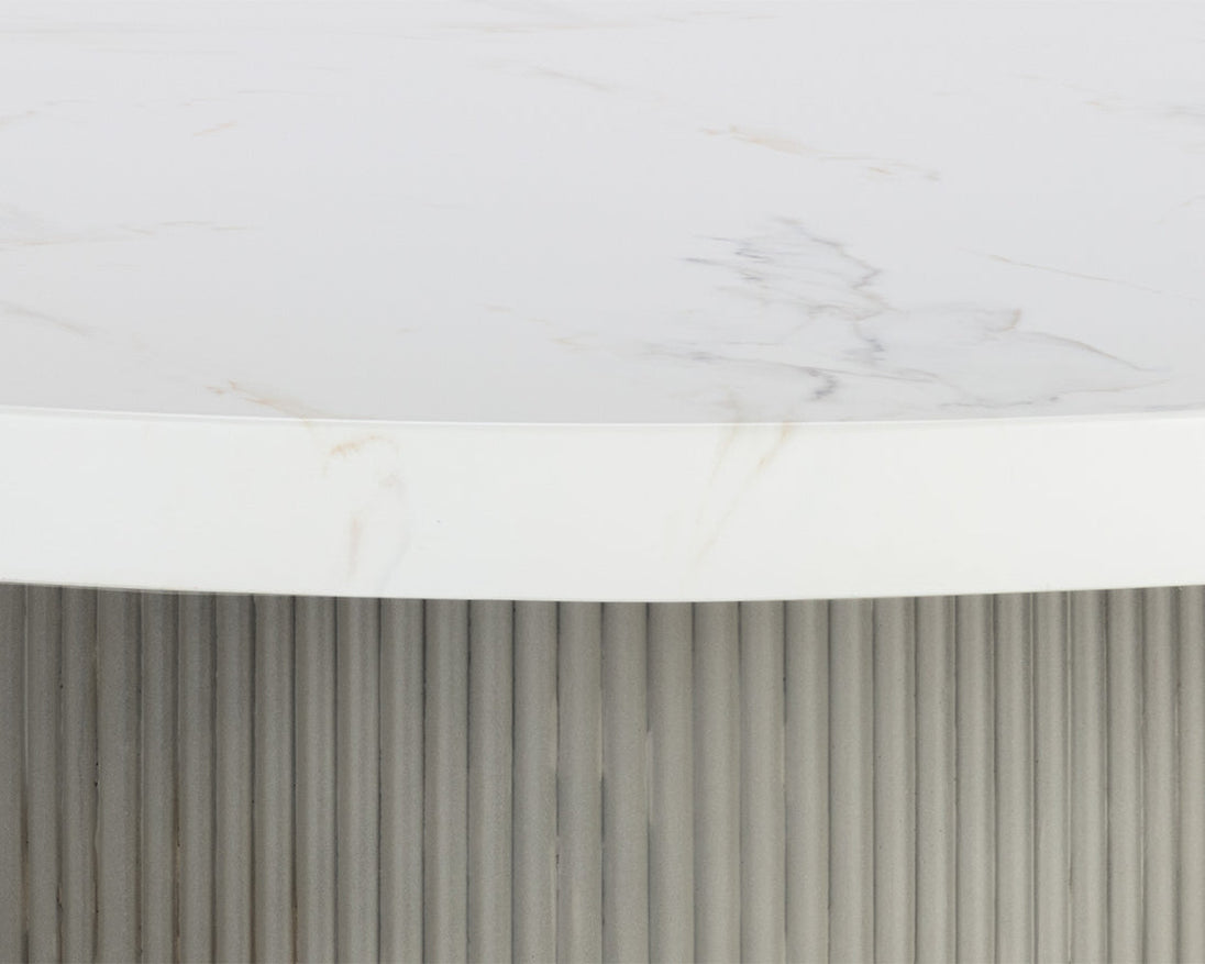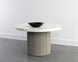 A round, contemporary 40" dining table that features a clean and refined design. Crafted from light grey concrete with a stylish fluted table base. Also stocked in ivory concrete. 55" size also available. Suitable for indoor and covered outdoor spaces.