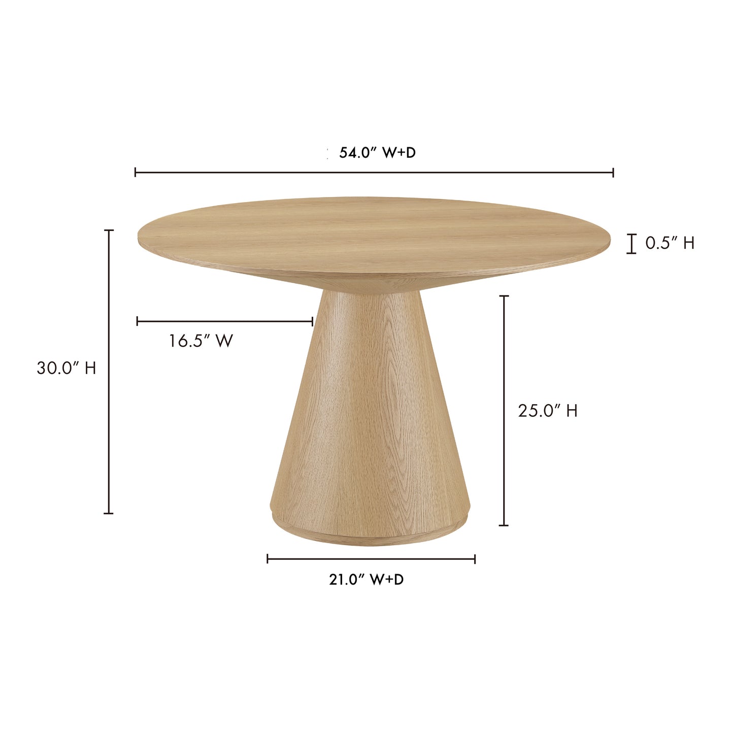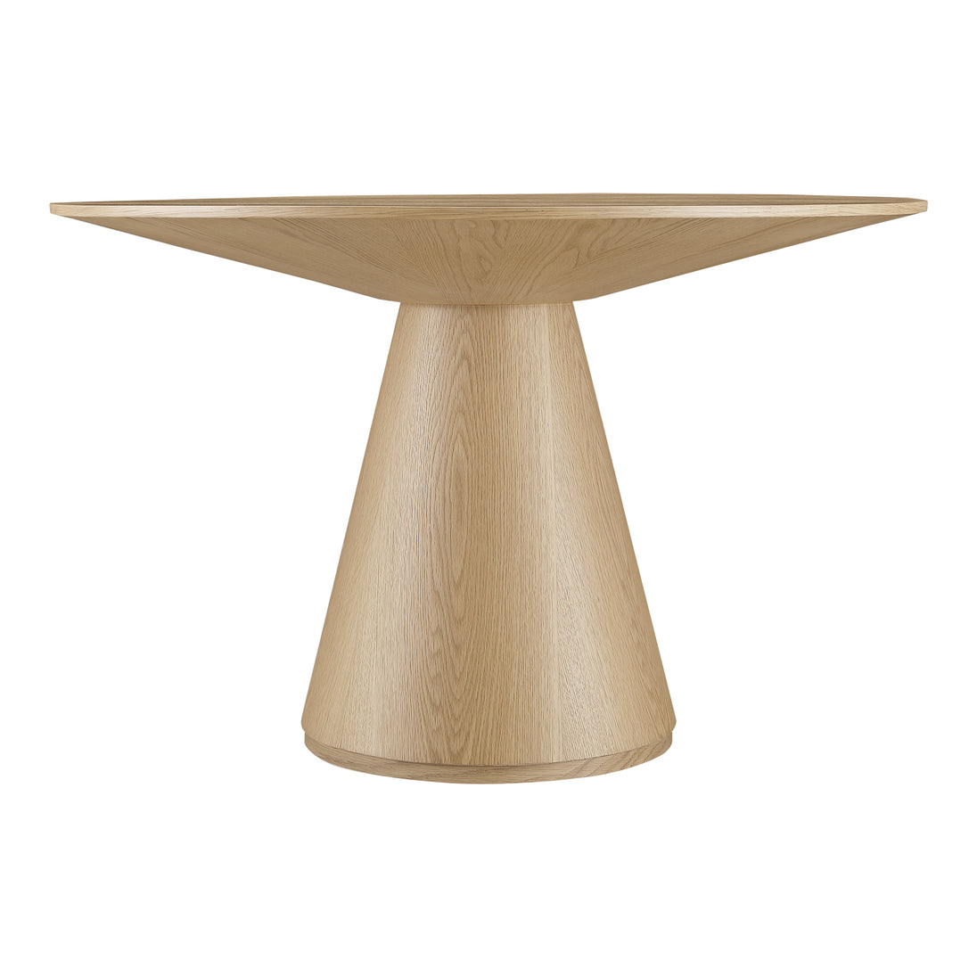 A stately solid wood statement with an oak veneer round top, the Otago 54 inch round dining table’s flared base & sleek top create a warm aesthetic, allowing it to fit seamlessly in any dining area. A triumph in paired-back contemporary design, the Otago is a sublime showcase of oak’s natural character.