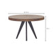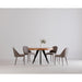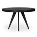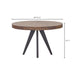 The Parq Round dining table is a sophisticated fusion of modern design and rustic charm. Each piece of solid Acacia is meticulously hand-selected to create a visually interesting tabletop, with careful consideration given to the natural variations and final appearance of each individual piece. The table's parquet-patterned top is complemented by elegant, black-painted legs, the robust industrial metal base providing a striking contrast.