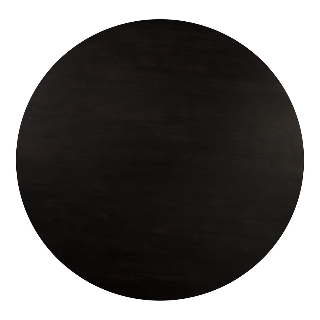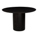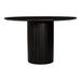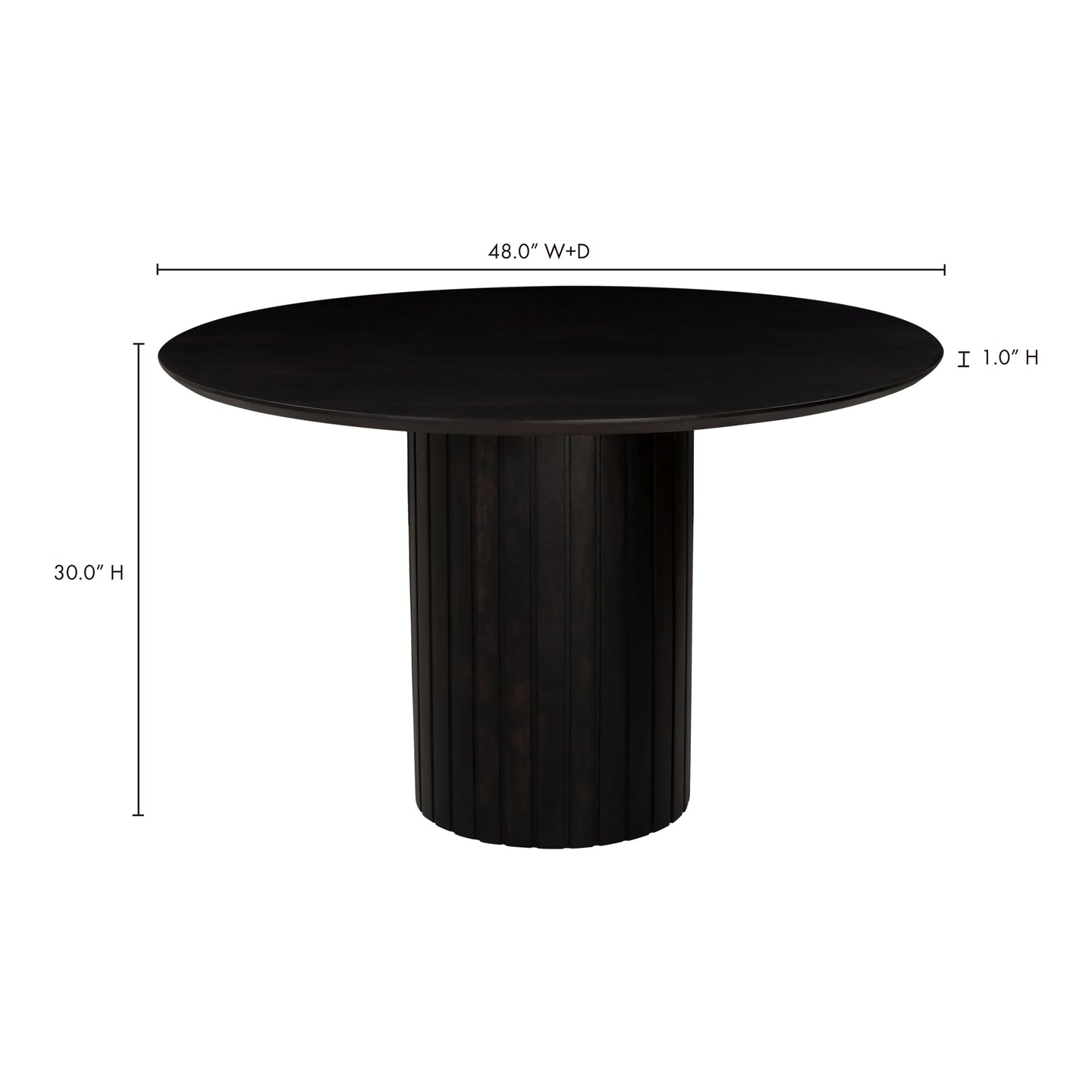 A meeting of shape and form, the Povera dining table will serve as the pillar of your dining area. Povera features one large column supporting an expansive round tabletop, its gentle ribbing reminiscent of ripples and waves. With a rich black finish featuring a soft purple undertone that allows the natural wood grain of the Acacia wood to show through, this dining table uses simple geometry and natural materials that offer bold statement appeal.