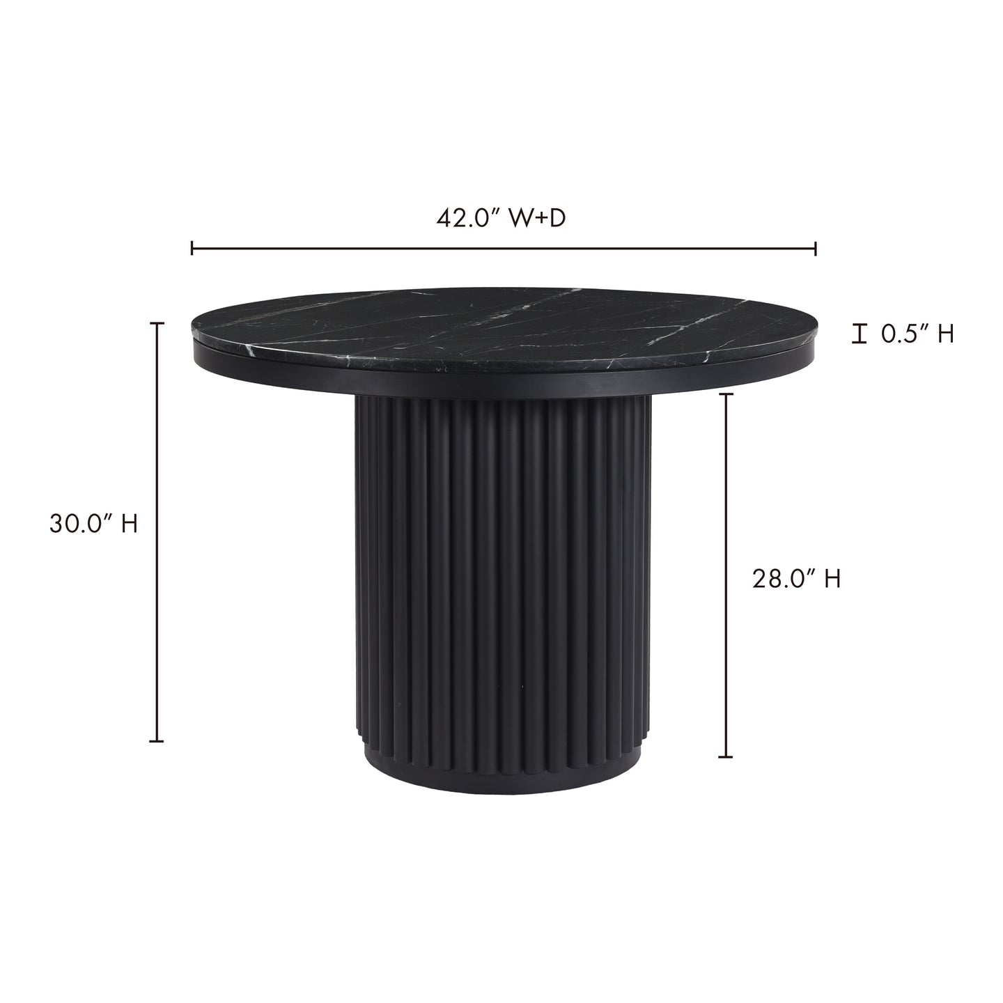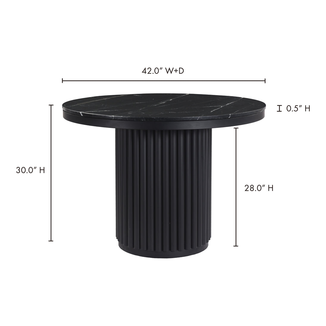 Inspired by Roman architecture, the Tower dining table features a black-finished pillar base holding up a beautiful black marble top. This classic yet modern design, which seats two to four people, is a welcome addition to any contemporary home.