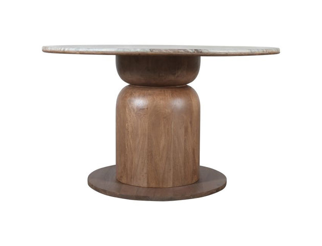Evora Round Solid Top Metal Single Pedestal Table Collection