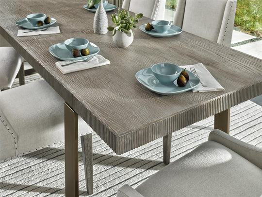 The Robards Rectangular Dining Table artfully juxtaposes a lustrous bronze base against a delicately ridged, matte-finished wood, creating a bold dining room statement piece.Product FeaturesFinish - QuartzSpecifications Item Depth (Inches): 38 Item Height (Inches): 30 Item...Sale price $6,079.00Regular price $9,119.00Sale price $6,079.00Regular price $9,119.00 -