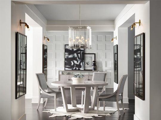The Round Dining Table instantly enchants spaces with its exquisite fusion of texture and material, showcasing a smooth marble Lazy Susan encased by a Siltstone-finished top and geometrically-inspired base.Product FeaturesFinish - Siltstone GraySpecifications Item Depth (Inches):...Sale price $5,099.00Regular price $7,649.00Sale price $5,099.00Regular price $7,649.00 -