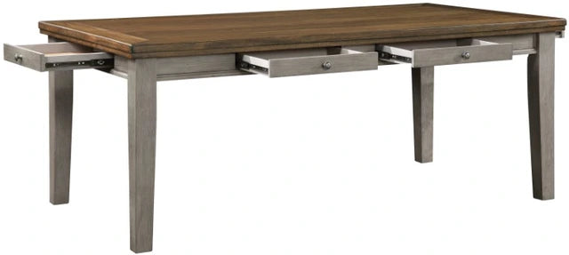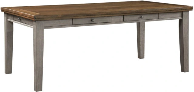 Product Description: The traditional styling of the Tigard Collection lends timeless appeal to the look of your casual dining space. With subtle hints nodding to the Arts and Crafts design movement, the framed plank tabletop features classic lines that solidify the versatile aesthetic of the collection. A traditional two-tone cherry and gray finish is utilized to highlight the collection's acacia veneer.