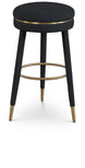 Liven up your breakfast nook with this Coral black boucle fabric bar stool from Meridian Furniture. Its rich black boucle fabric upholstery offers soft texture while you sit, and its swivel function allows you to twist and turn while you sit at the counter. This bar-height chair adds lift to your day while you swivel happily at your breakfast bar. It features brushed gold accents, giving it a contemporary design that complements any modern living space.