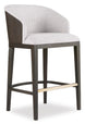 Chic and modern with an eclectic mix of a fabric upholstered seat and inside back, White Oak Veneer wood on the outside back and a metal foot rail, the 41 ¼-high Curata Bar Stool is comfy and inviting in a Midnight finish and upholstered in the neutral Montlieu Opal fabric.