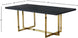 Give dinner guests a stylish spot to relax and unwind with this Elle Gold Dining Table. This table features a polished gold chrome design with a coordinating Black Charcoal MDF top for a look that is modern and chic. The expansive top gives you plenty of elbow room at mealtime, so guests stay comfortable from appetizers through dessert, and it's a black charcoal color gives it an ultra contemporary look making it easy to pair with the chairs of your choice.