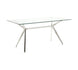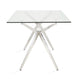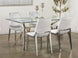 Accompanied by four Minos Dining Chair White Leatherette with a unique, eye-catching stainless steel hourglass pattern on the back, this set combines modern aesthetics with comfort. The chairs are designed with plush seat and back padding to ensure maximum comfort during meals and gatherings. The Lilian Dining Set rejuvenates your living spaces, bringing a classically modern flair that enhances any decor.