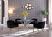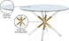 Bring modern pizzazz to your living room with this Mercury Acrylic Gold Dining Table by Meridian Furniture. The base features a pedestal design with acrylic gold legs for a touch of contemporary fun. The tempered glass top offers plenty of room for seating guests for intimate meals together. The top is clear, so you can easily see the beauty of the metallic legs showing through, giving your living room or den a little something extra.