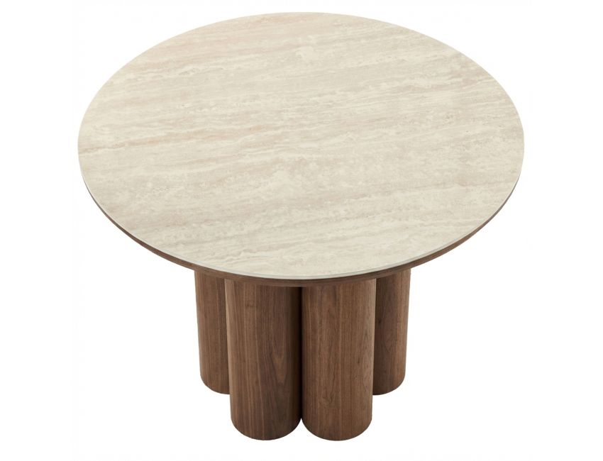 Seaton and Noelle 5pc Dining Set - Walnut and Travertine Table and Brown Chairs