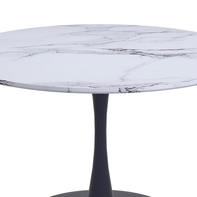 Zilo 40" Round Dining Table in White Faux Marble and Black