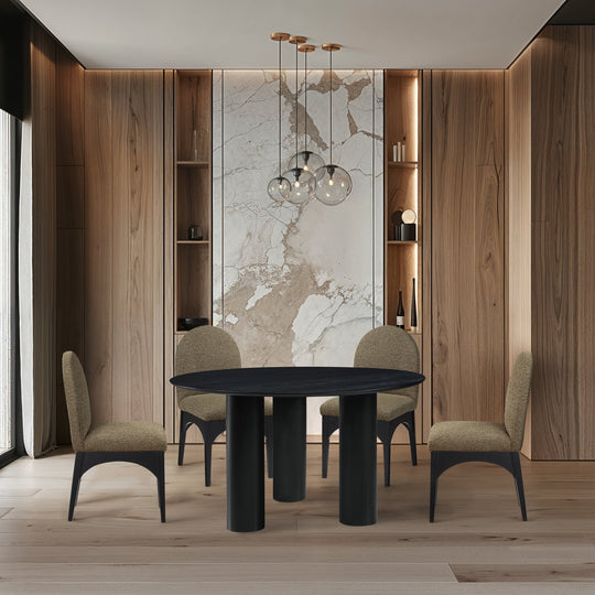 With its sleek silhouette and durable construction, the Corvina travertine sintered stone and black oak veneer dining table is a timeless investment. Its striking contrast of rectangular sintered stone top and wavy oak veneer base curate...Sale price $3,750.00Regular price $5,000.00Sale price $3,750.00Regular price $5,000.00