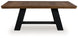 - Two-tone finish (mindi wood veneer inlay top with medium brown finish; base with painted black finish)