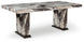 - Tabletop and double pedestal base with replicated marble pattern; polyester topcoat for lasting beauty
