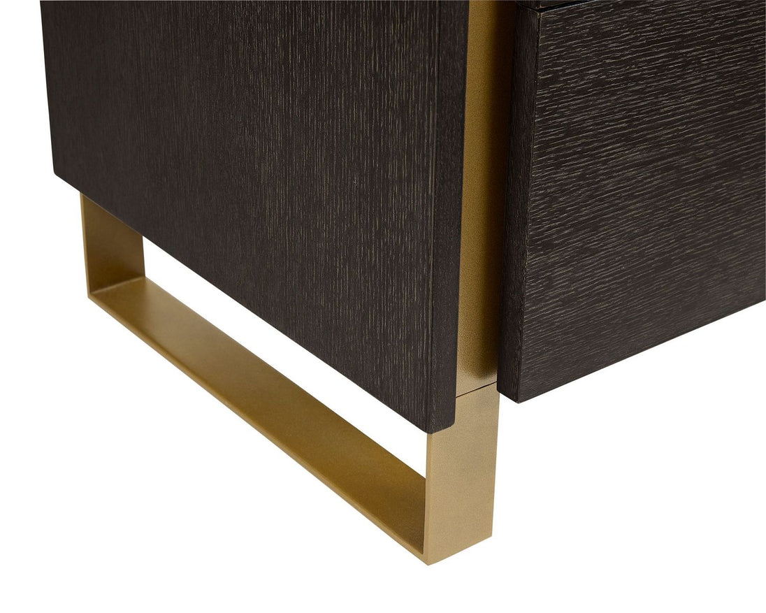 Exuding a refined style, this classic dresser will add beauty to any bedroom space. Features six push-to-open drawers and crafted in a grey solid oak wood and wood veneer frame. Completed with steel legs in a rustic bronze finish. Pairs well with the Alvaro nightstand and bed.