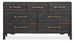 In a classic, charming design with a nostalgic flair, the American Dresser is crafted of Oak Veneers with a Solid-Wood Edge Top, a scalloped-shape base and finished in the deep, dark Molasses finish. There are 7 self-closing drawers, with the top left and right drawers with black removable felt liners. The center drawer has a black liner and black removable jewelry tray. The bottom two drawers are cedar-lined. Metal alloy pulls are in an antique bronze finish.