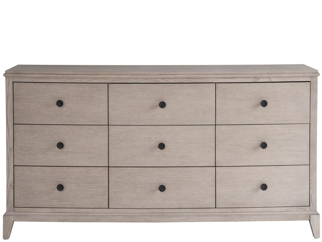 The Coalesce Dresser pairs practicality with sleek design, featuring nine drawers with soft-close undermount guides and simple, rounded metal pulls, blending seamless function with a touch of modern minimalism.