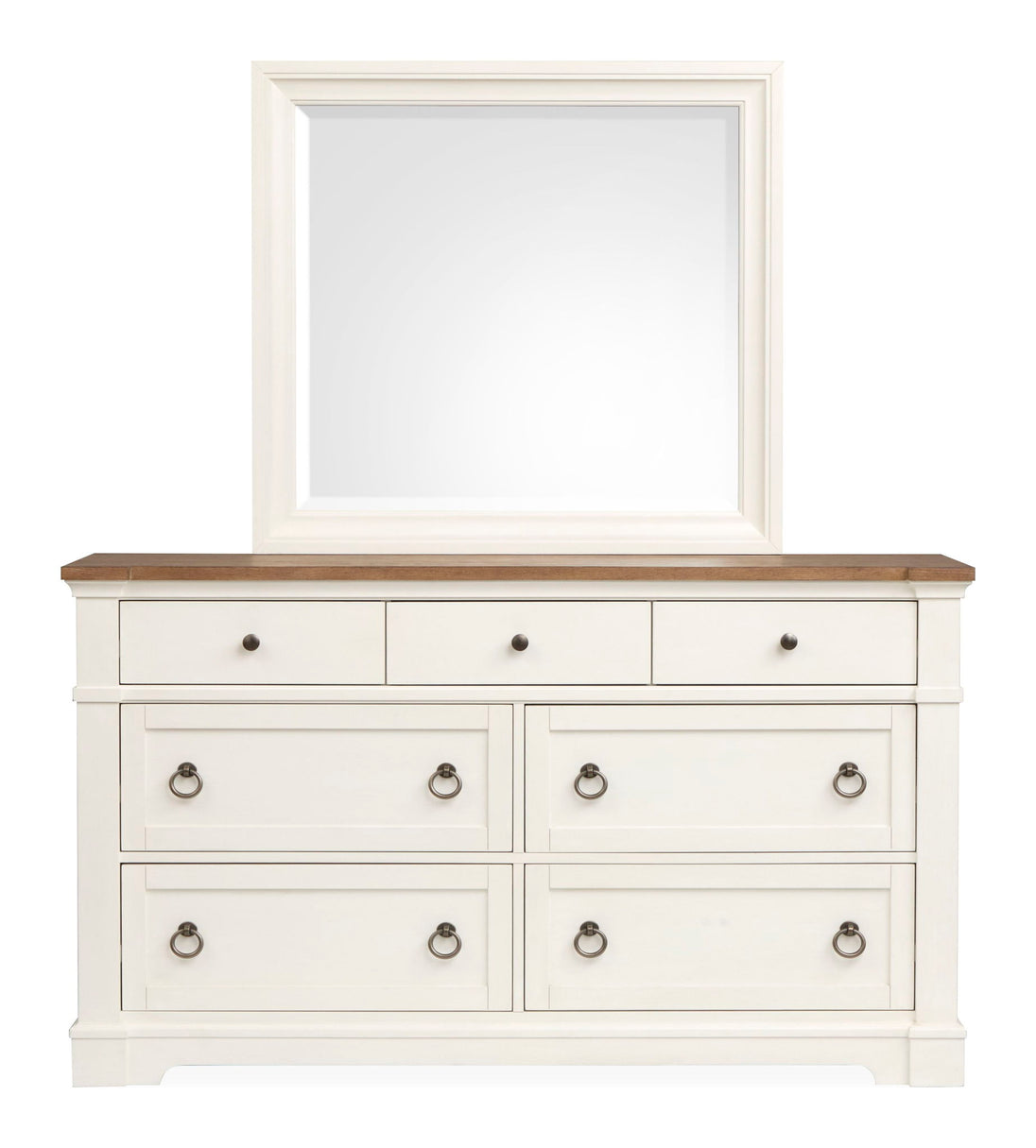 Kingston - Drawer Dresser With Landscape Mirror - Whisper White And Cerused Nutmeg