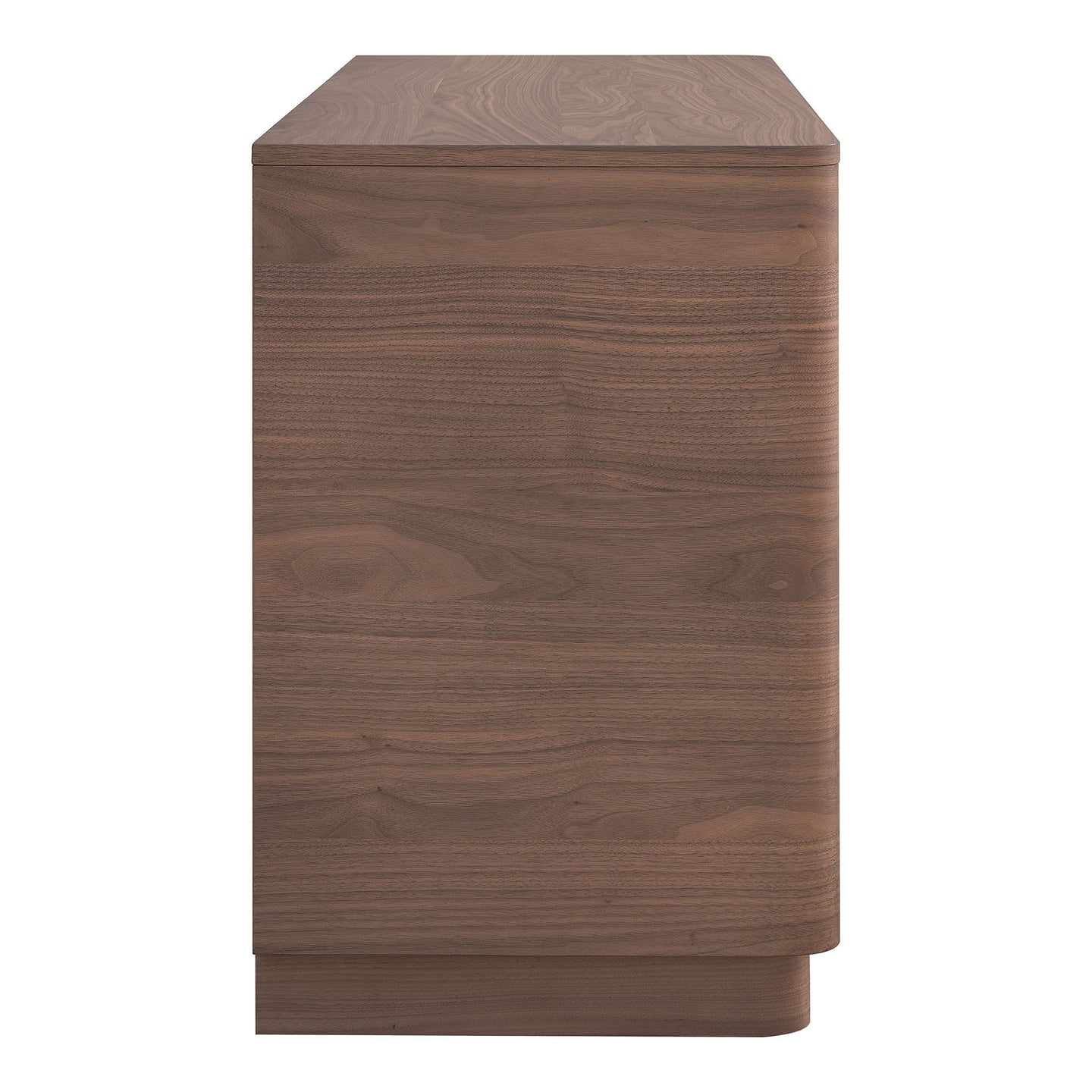 Six drawers, zero clutter, all style. The Round Off dresser pairs softened corners with warm walnut tones, bringing calm design and everyday function into the bedroom. Its low, grounded form feels modern yet approachable, while six drawers glide smoothly on soft-close hardware to keep clothing neatly contained. Finished in walnut veneer with a rubberwood base, this dresser delivers timeless design and practical storage in one piece.