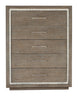 In a crisp two-tone finish combining a gray washed oak with a contrasting textured light gray color, the Serenity Five-Drawer Chest brings the organic textures of cottage waterfront living to your space. Crafted of Oak Veneers and resin, the drawers have soft-close drawer guides, the top drawer has a removable black felt liner and the bottom drawer is cedar-lined.