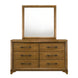 The Talcott 6 Drawer Dresser in honey finish is a perfect blend of durability and style, crafted from solid rubberwood, manufactured woods, and Mindy wood veneers for strength and stability. This transitional piece combines traditional and contemporary elements, featuring distinctive bracket feet, robust picture frame moldings, and sleek elongated drawer pulls. The hand-rubbed, multi-step finish highlights the wood's natural beauty, while premium dovetail joinery and ball-bearing glides ensure smooth, full-extension drawer operation. With six spacious drawers, including velvet-lined top drawers for delicate items, this dresser offers ample clothing storage and a unique, modern flair, making it a stylish and practical addition to any bedroom.