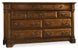 In a warm, chestnut-colored rustic finish over figured Alder Veneers accented by classic knob and handle hardware in an aged copper finish, the Tynecastle Chest projects a Hunt Country vibe. Ten roomy drawers, with the top drawers felt-lined, and the bottom drawers are cedar lined. The top center drawer has a jewelry tray. Crafted of Poplar Solids and Figured Alder Veneers.