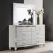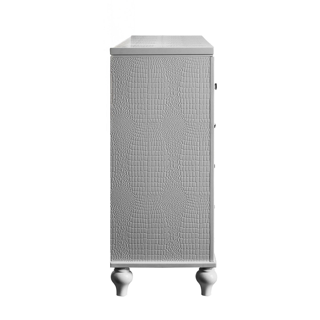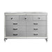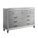 Discover the Valentino 9 Drawer Dresser—a marvel of durable craftsmanship crafted from a blend of manufactured and solid woods, adorned with exquisite embossed inlays. Radiating with glitz and glam, its gleaming finish, mirrored trims, crystal-studded drawer pulls, and alligator-embossed accents capture the essence of Hollywood allure. Delight in its thoughtful details, from heirloom-crafted English dovetailed drawers with snag-free interiors to smooth full-extension ball-bearing glides. With an abundance of storage, this dresser offers ample space to organize your clothing and belongings effortlessly. Experience luxury and functionality combined in this unparalleled piece of furniture.