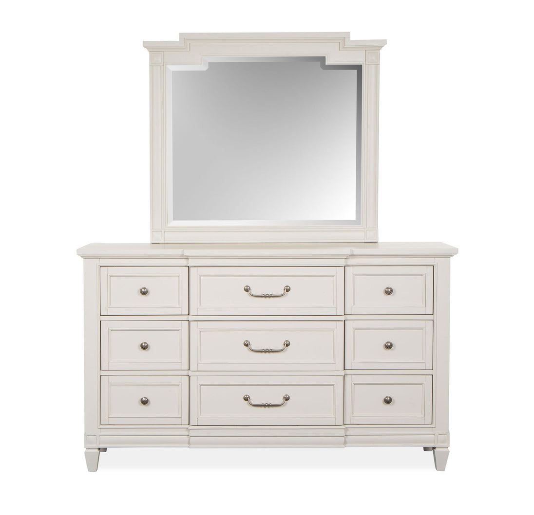 Willowbrook - Drawer Dresser With Landscape Mirror - Egg Shell White With Slight Rub Through