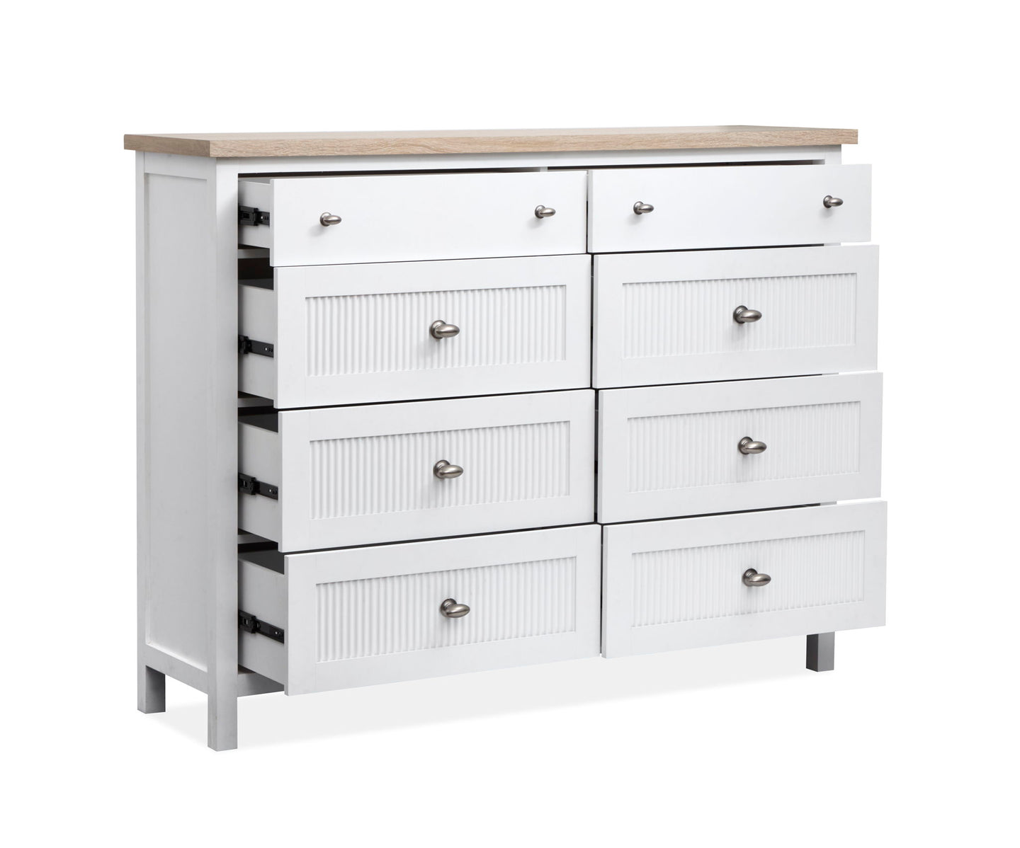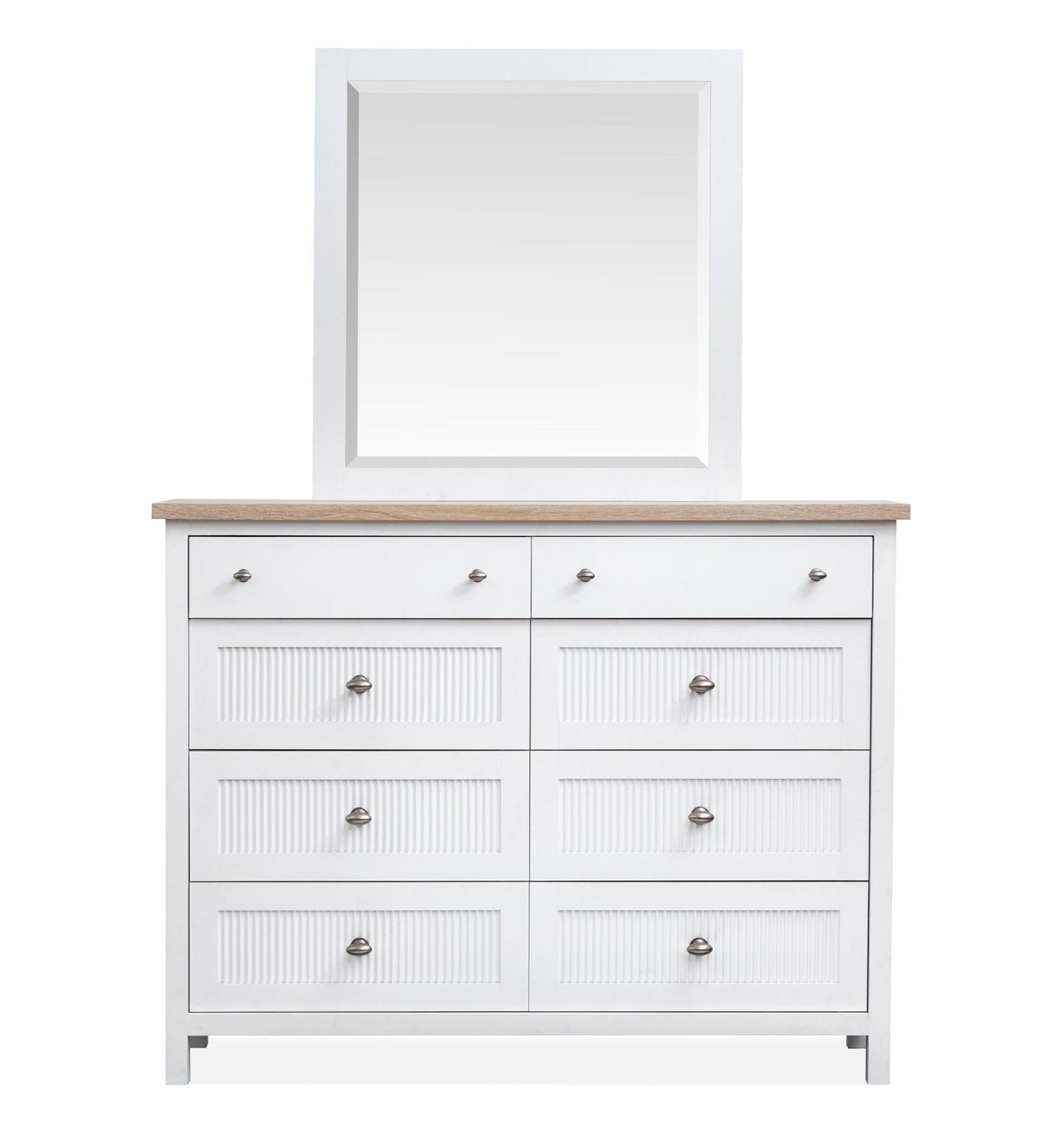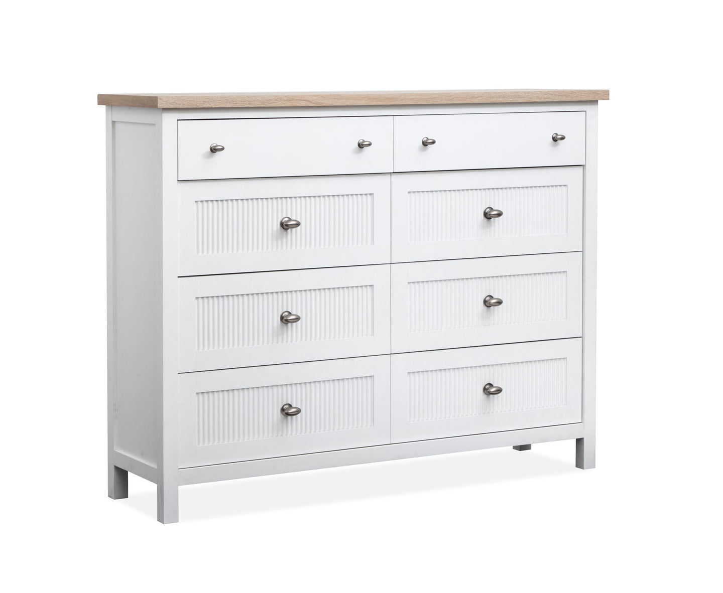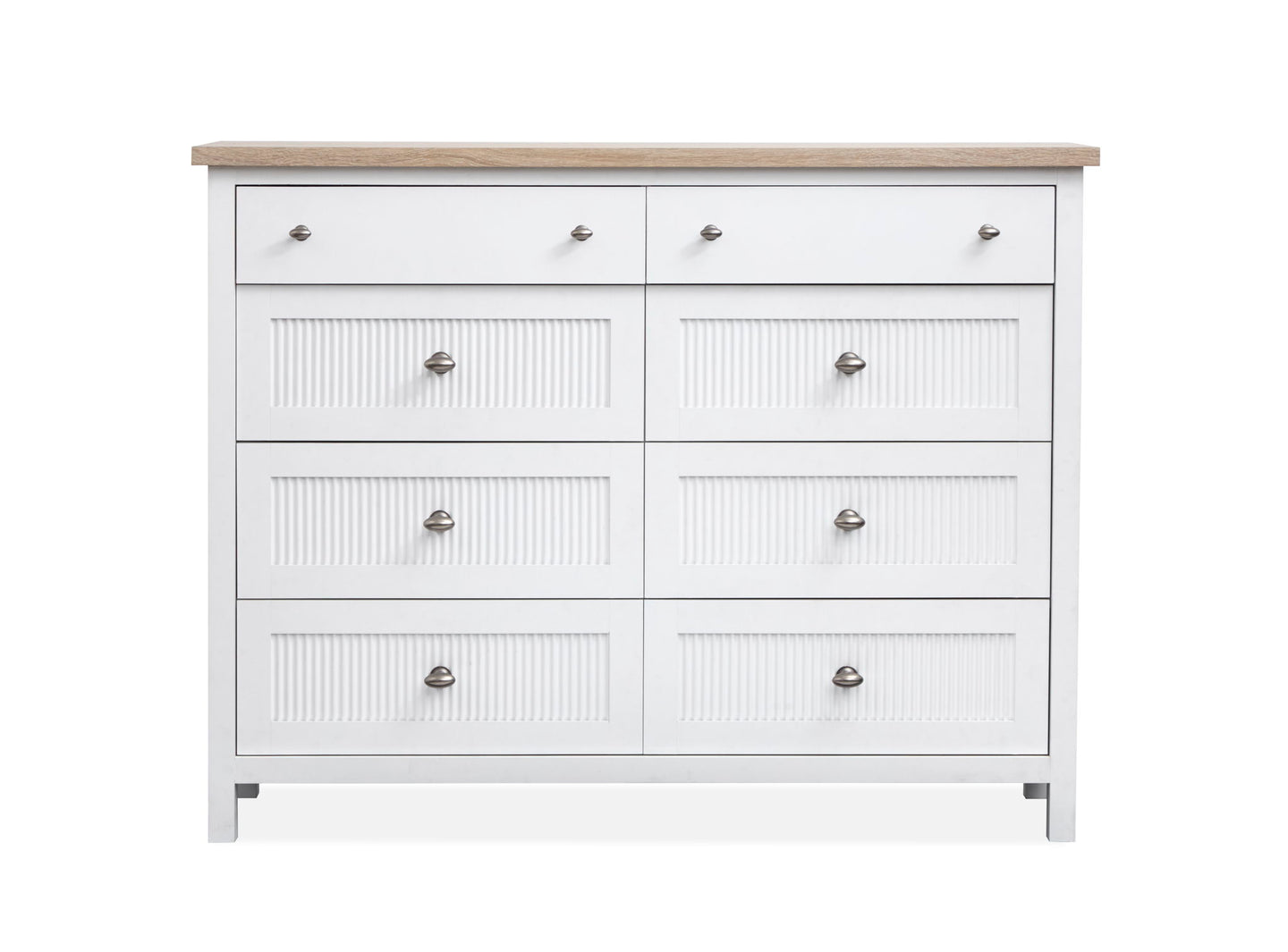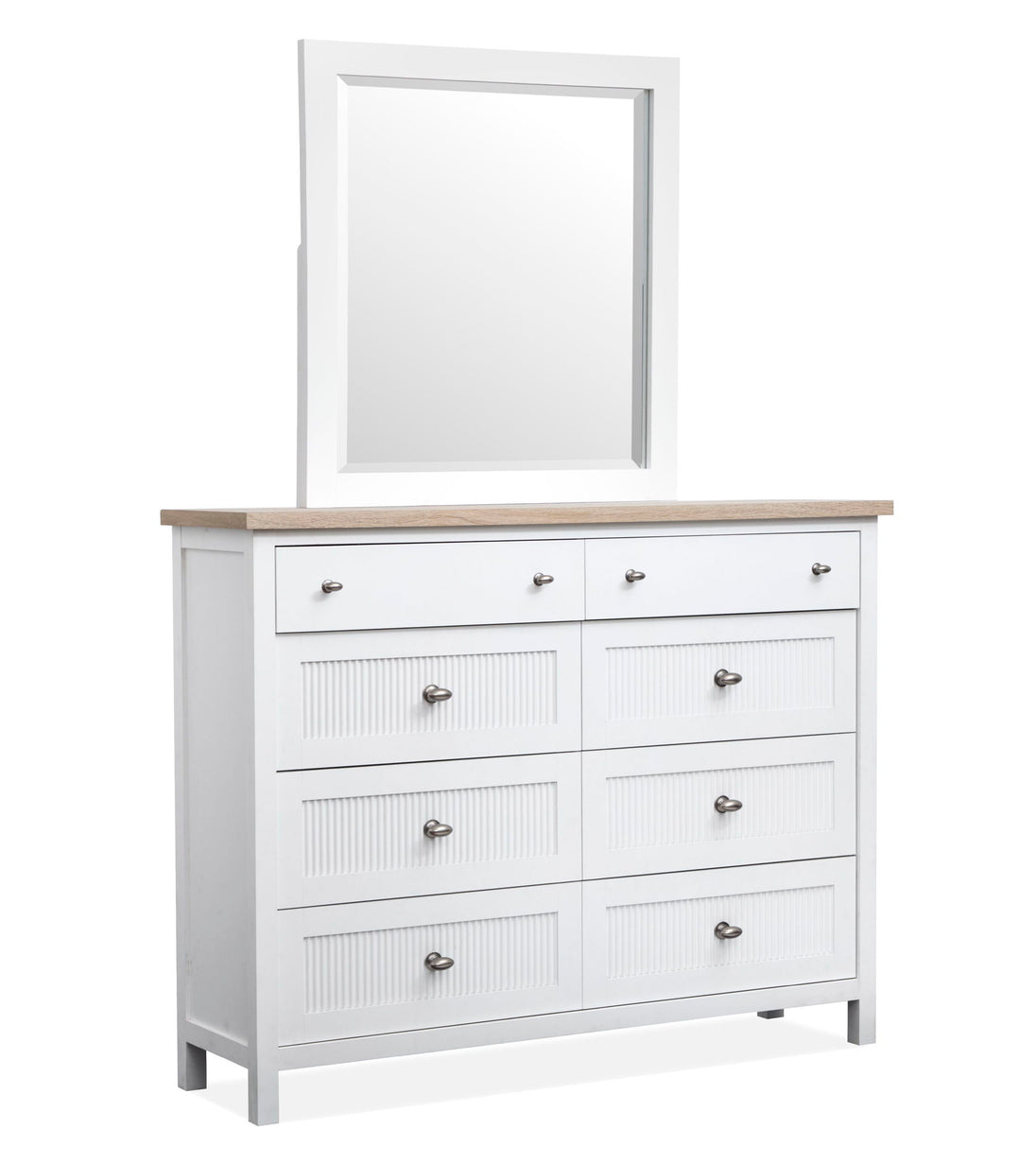 The Windmill Harbour Collection brings a laid-back and coastal vibe to your space with its soft White Wisp and Sand finishes. The two-tone design and featuring driftwood oak tops paired with a white-painted base and gives each piece a relaxed and beachy feel. The casegoods are thoughtfully designed with framed drawer fronts and decorative reeding and and recessed lower drawers that add a touch of character and charm. Whether you're looking to refresh your bedroom or create a cozy retreat and the Windmill Harbour Collection is the perfect blend of comfort and timeless coastal design.
