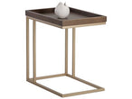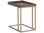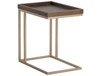 This c-shaped end table is infused with rustic style and minimalist design elements. Features a solid oak wood tray top with a dark grey finish and a sleek black iron frame.