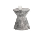 A tapered design on this round concrete end table creates a bold but defined look. Made from concrete with a grey marble look finish. Suitable for indoor and covered outdoor spaces