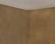 Turn heads with this contemporary, rectangular end table that features a bold design. Crafted with an antique brass steel top and a matte black powder coated steel base. Coordinating end table also available. Also comes in a gunmetal finish.