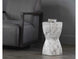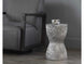 With a mesmerizing shape, this end table is well defined by its stunning swirl indentation on the base. Made with a grey faux marble finish on concrete. Suitable for indoor and outdoor covered spaces. Coordinating coffee table in white concrete also available.