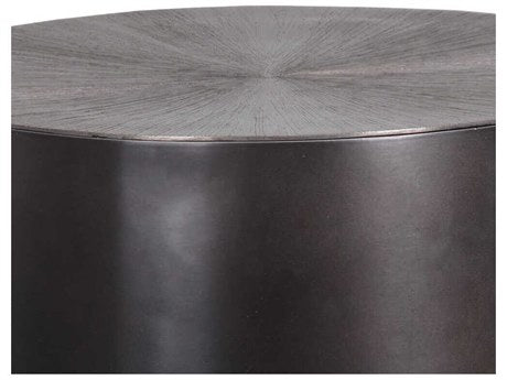 A captivating side table with an alluring antique gold finish. Features a hand-etched and hand-hammered top with a drum style base. This piece will add a contemporary flair to living, lounge and office spaces. Coordinating coffee table in small and large sizes also available. Made in India. With refined craftsmanship, this design was brought to life by skilled local artisans. By nature, these materials develop unique imperfections such as fissures, markings and colour variations for a truly one-of-a-kind piece.