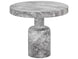 A clasically chic end table with an elegant design. Featured a round table top with a curved tabletop base in matching grey faux marble finished concrete. Coordinating coffee table also available.