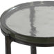 This universal accent table blends with virtually any style. The chiseled cast aluminum base is finished in dark gunmetal and is accented by a thick textured art glass top.