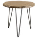 Influenced By Modern Lodge Style, This Side Table Features A Cross Cut Veneered Wood Slab Top With Live Edge Details Paired With A Simple Iron Hairpin Base Finished In Aged Black.Product Features