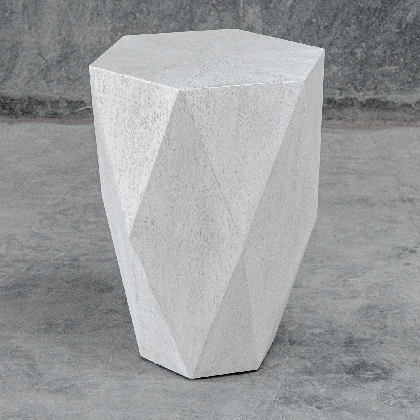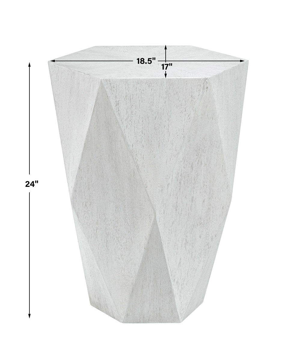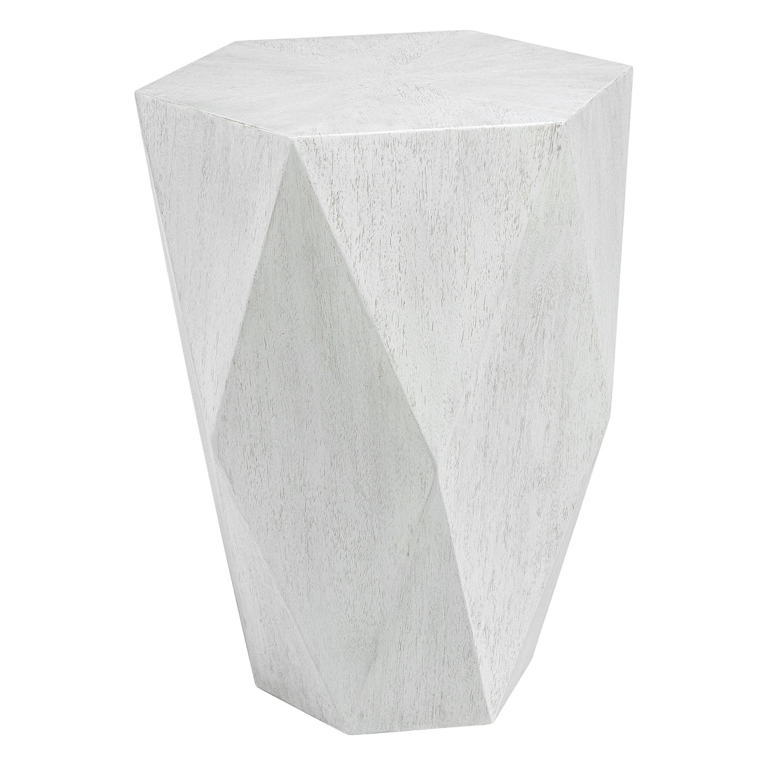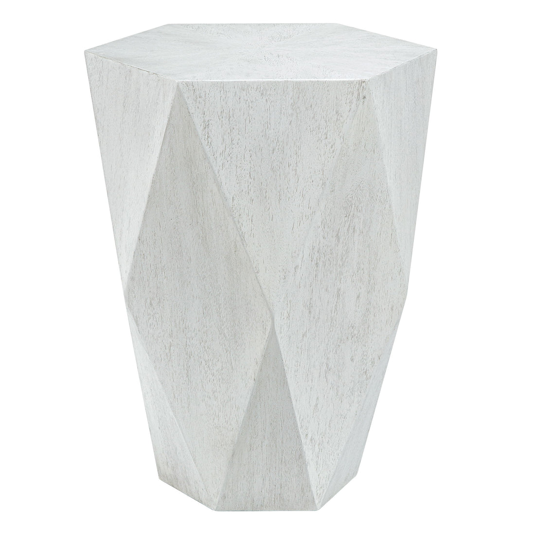 This Unique Geometric Side Table Features A Sunburst Top In Mango Veneer In A Fresh White Ceruse Finish.Product Features