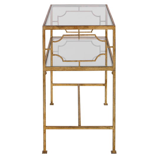 Featuring Elegant Forged Iron Decorated Sides, This Side Table Is Finished In Antique Gold Leaf With Clear Tempered Glass Top And Gallery Shelf.Product Features Uttermost's Accent Furniture Combines Premium Quality Materials With Unique High-style Design. With...Sale price $539.00Regular price $849.00Sale price $539.00Regular price $849.00 -