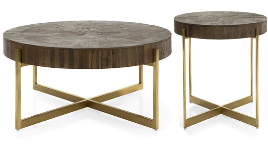 Landen Coffee Table Collection A stunning blend of rustic charm and modern elegance, the Landen Table Collection features a reclaimed natural elm wood top paired with a sleek stainless steel base in a rich gold finish....Sale price From $559.00Regular price $1,199.00Sale price From $559.00Regular price $1,199.00 -