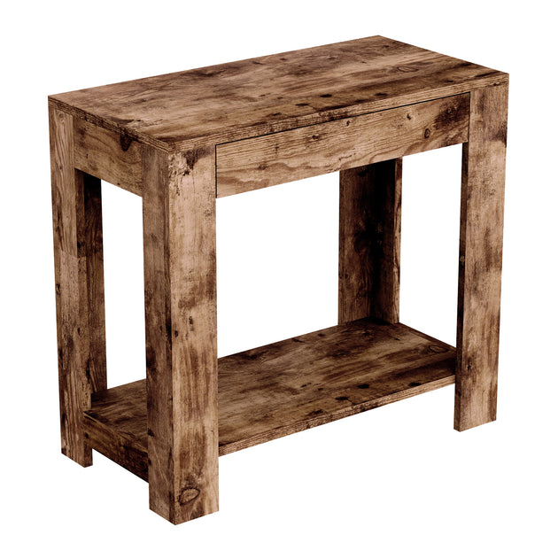 24" Classic Narrow Accent Table Brown Reclaimed Wood Hidden Storage Shelf