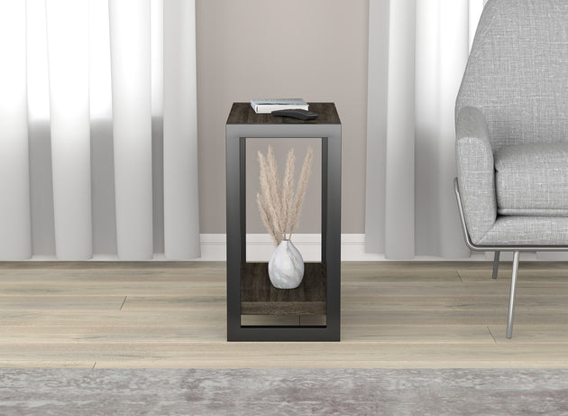 24" Classic Narrow Accent Table Dark Grey Hidden Storage Shelf