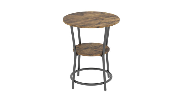 22" Round Side Table Brown Reclaimed Wood Black Metal