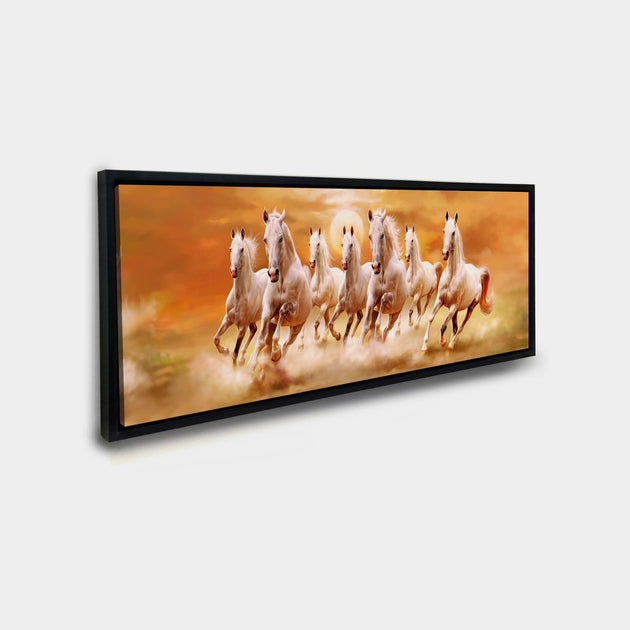 7 Horses and Sunshine-Wall Decor- Wildlife Canvas Art - Gold varnish