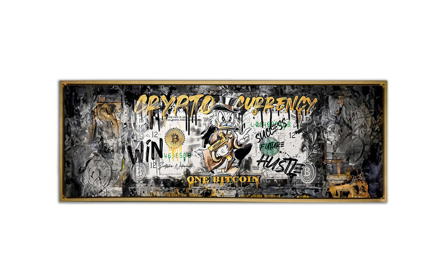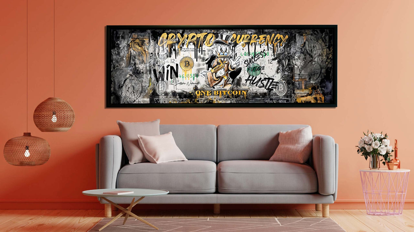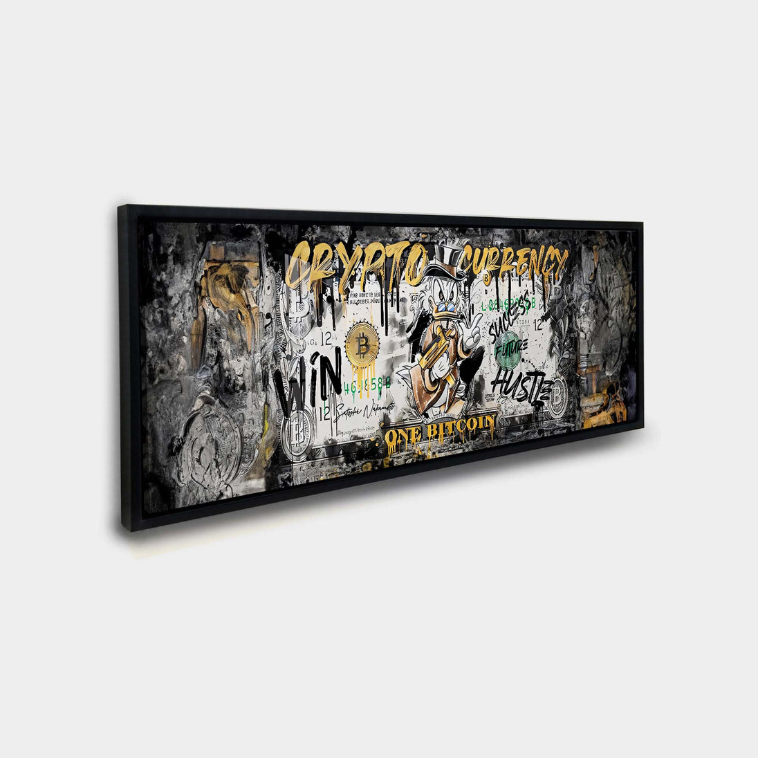 Transform your space with this eye-catching Bitcoin Pop art on canvas. With an attractive image combining one of the world's major currencies and a popular cartoon character, it adds a playful touch to your decor while sparking an interesting conversation about international finance. Plus, the high-quality canvas ensures long-lasting vibrancy.